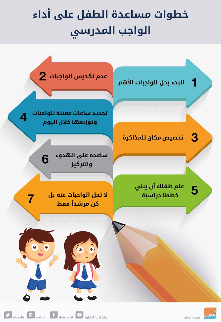 إنفوجراف .. خطوات مساعدة الطفل على أداء الواجب المدرسي