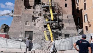 إصابة 3 عمال انهيار جزئي لبرج تاريخي قرب الكولوسيوم في روما