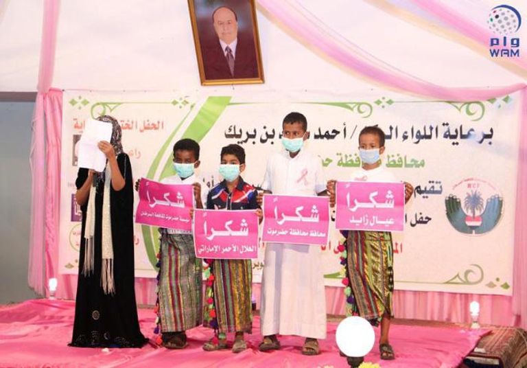 وأعرب محافظ حضرموت اللواء أحمد سعيد بن بريك بحضور قائد المنطقة العسكرية الثانية وممثل الهلال الأحمر الاماراتي، عن شكره لدولة الإمارات العربية المتحدة بقيادة الشيخ خليفة بن زايد آل نهيان، رئيس دولة الإمارات، لوقفة الدولة المشهودة إلى جانب الجمهورية اليمنية وشعبها في إطار نهجها الإنساني الذي يقوم على مساندة الشقيق والصديق.