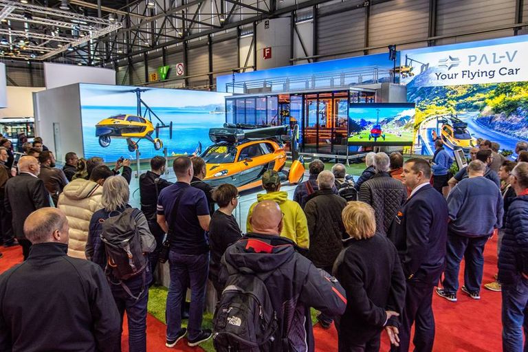 عرضت شركة "PAL-V" الهولندية بمعرض جنيف نموذجا لـ"السيارة الطائرة" التي تعد الأولى من نوعها في العالم يمكن طيها لتسير على الأرض.
