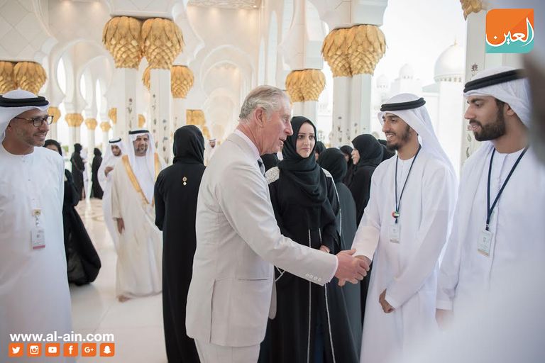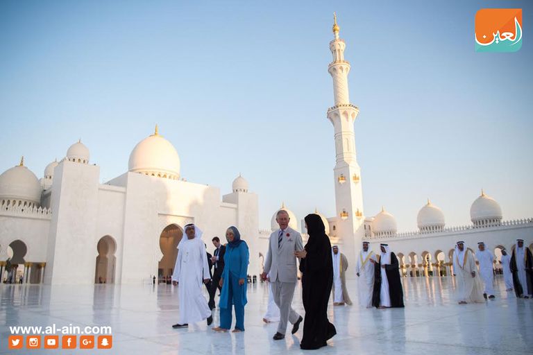 زار الأمير تشارلز ولي عهد المملكة المتحدة وزوجته كاميلا دوقة كورنوول مسجد الشيخ زايد الكبير في أبوظبي، في إطار تعزيز قيم التسامح الديني واحترام التعددية الثقافية.