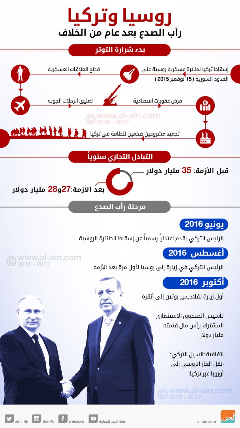 إنفوجراف.. رأب الصدع بين روسيا وتركيا بعد عام من الخلاف