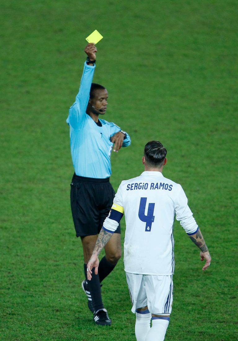 وكان راموس تلقى بطاقة صفراء في الدقيقة 55، وبينما كانت المباراة تتجه إلى نهايتها تدخل مجددا بشكل عنيف على لاعب كاشيما الياباني، ووضع حكم المباراة سيكازوي يده في جيبه كي يشهر بطاقة صفراء لكنه تذكر أن قائد الريال لديه بطاقة سابقة، فتغاضى عن إشهار الثانية وسط حالة من الدهشة انتابت لاعبي الفريق الياباني.