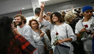 ومرتدية ثيابا رمادية تستخدم في السجون الإسرائيلية ومثلها الناشطة غريتا تونبرغ، تابعت: "لدينا الكثير لنكشف عنه". وندّدت بـ"المعاملة التي لقيناها من النظام الإسرائيلي"، مؤكدة أن "بعضنا تعرض للضرب".