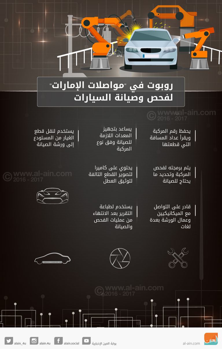 إنفوجراف.. روبوت في "مواصلات الإمارات" لفحص وصيانة السيارات
