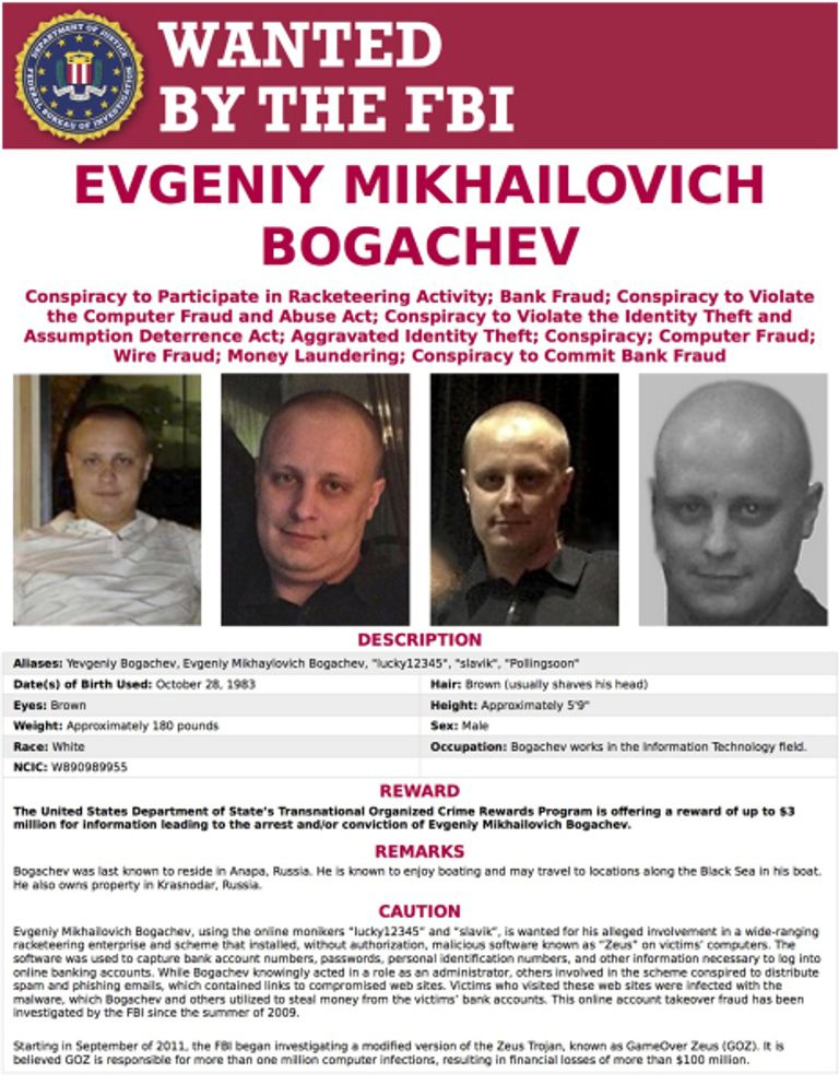 الشرطة الفيدرالية الأمريكية "إف بي آي" أعلنت عن مكافأة قدرها 3 ملايين دولار لمن يدلي بمعلومات تؤدى لإلقاء القبض على إيفجيني بوكاييف.