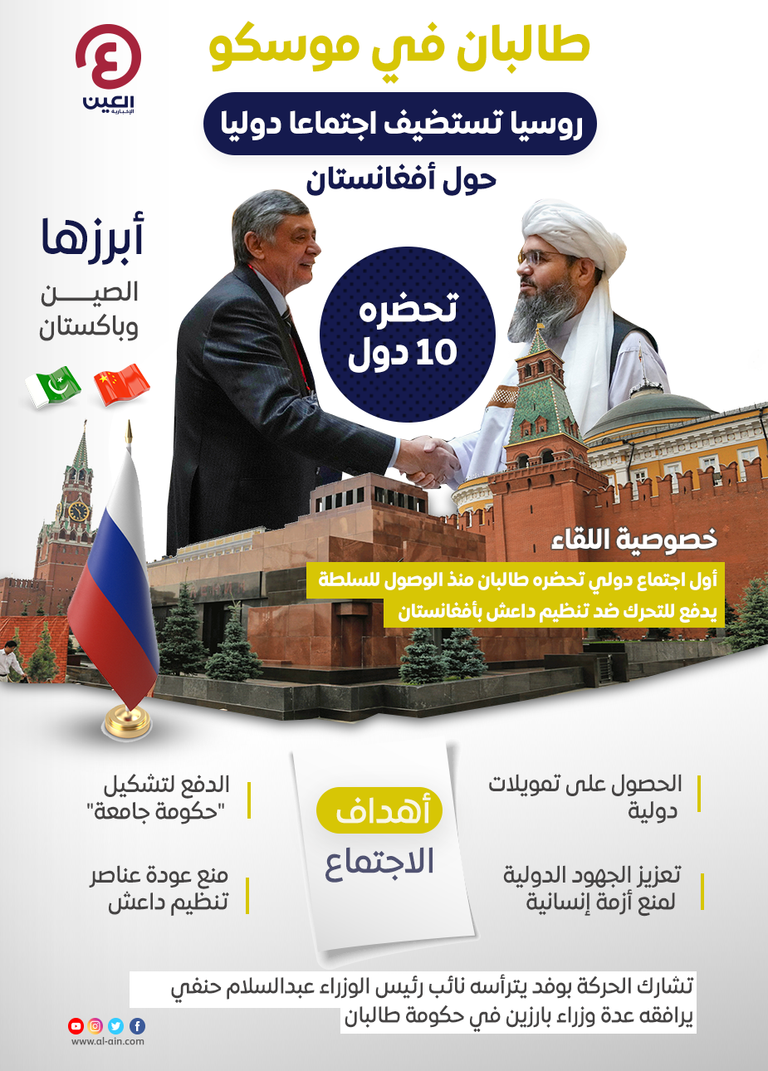 تجلس، اليوم الأربعاء، طالبان مع 10 دول على طاولة اجتماع في موسكو، في أهم لقاء دولي تحضره الحركة منذ وصولها إلى السلطة منتصف أغسطس/آب الماضي.