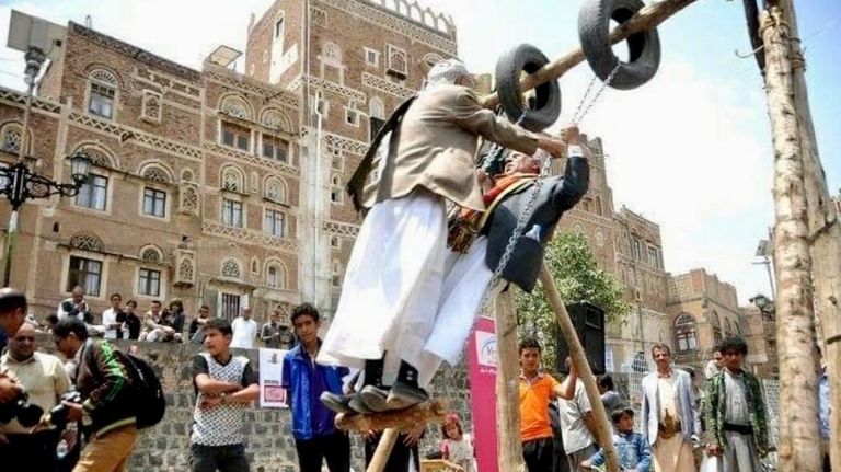 "أرجوحة صنعاء".. لعبة كبار اليمن مع عودة الحجاج (صور)