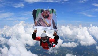 المظلي صالح الروضان يرفع صورة ولي عهد السعودية في إحدى جولاته