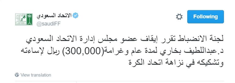 الإتحاد السعودي لكرة القدم يقرر معاقبة عضو مجلس إدارته عبد اللطيف بخاري بالإيقاف والغرامة، فما هو السبب؟