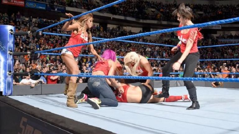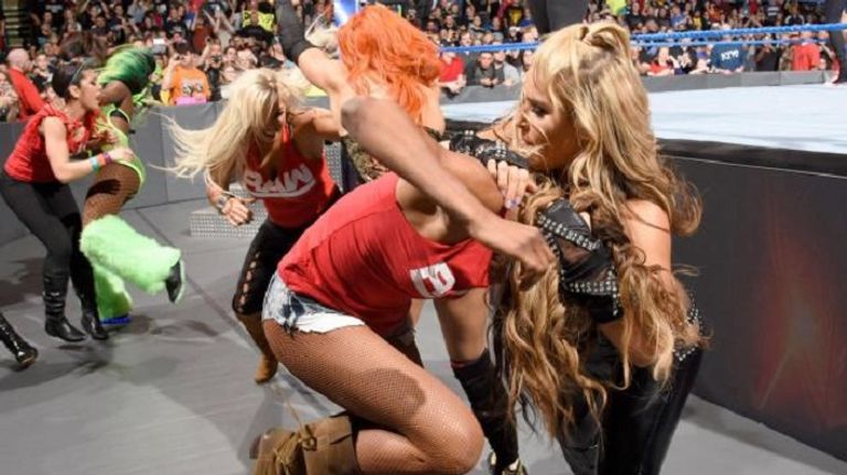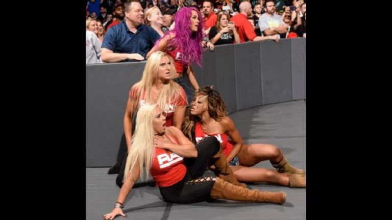 وصعدت نيكي بيلا إلى الحلبة وراء تشارلوت وكالت لها الضربات المتتالية، وفوجئ الجميع بعضوات فريق "رو" يدخلن الحلبة وينهلن بالضرب على نيكي بيلا، وهو ما دفع كارميلا لدخول الحلبة للدفاع عن زميلتها نيكي بيلا بالاشتباك مع مصارعات "رو".
