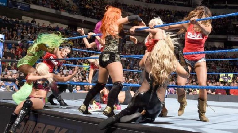 دار اشتباك طاحن في عرض "سماكدون" الأخير بين مصارعات العرض ونظيراتهن في عرض "رو"، عندما تدخلت مصارعات العرض الأخير في النزال بين نيكي بيلا وكارميلا، مما أدى إلى انتهاء النزال بدون فائز، وكانت نتيجة الاشتباك الطاحن سحق مصارعات "سماكدون" لمصارعات "رو".