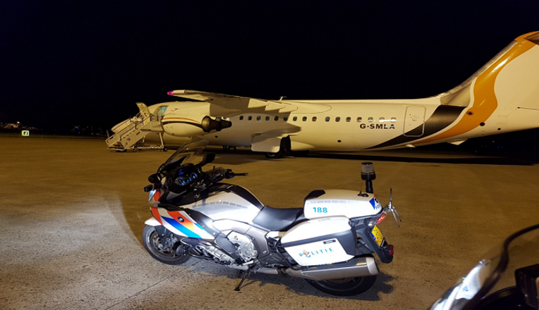 ونشر الشرطي الهولندي صورة لطائرة الفريق ودراجته النارية على حسابه الشخصي بموقع التواصل الاجتماعي "تويتر" وعلق عليها: "أحد لاعبي اليونايتد كان سيفوّت الطائرة لكننا وصلنا في الوقت المناسب، انتهت المهمة".