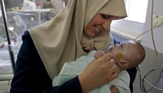 أم فلسطينية من غزة التقت رضيعتها، الإثنين، بعد 6 أشهر من الفراق، بعد أن حصلت الوالدة على تصريح إسرائيلي للانتقال من قطاع غزة إلى القدس لزيارتها في مستشفى فلسطيني في القدس الشرقية المحتلة.