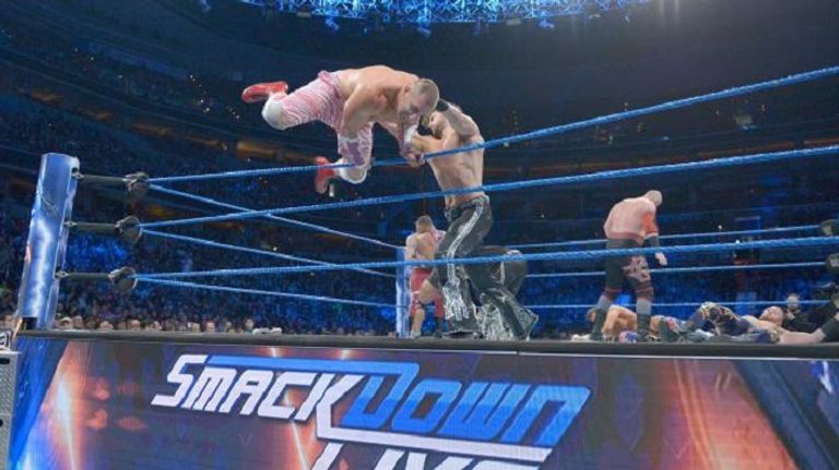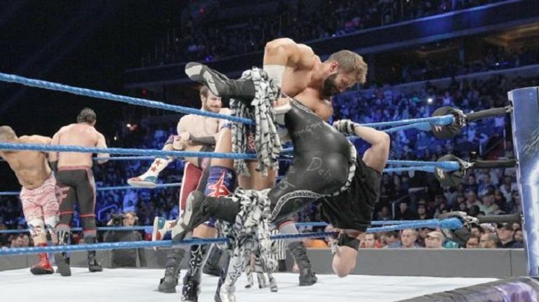 وقد اشتبكت كل الفرق في نفس الوقت، واستمر إلقاء المصارعين واحدا تلو الآخر من فوق الحبال، إلى أن تبقى زاك رايدر في مواجهة كونور الذي حمل منافسه ليلقيه خارج الحلبة، لكن رايدر أمسك بالحبال ولف رجليه حول رأس كونور ودفعه بقوة فخرج من على الحلبة من فوق الحبال، ليفوز فريق "ذا هايب بروس" المكون من زاك رايدر وموجو رولي بفرصة تحدي فريق راندي أورتن وبراي ويت على لقب "سماكدون" للتاج تيم.