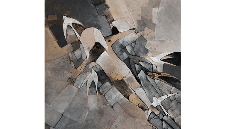 لوحات المعرض جزء من مشروع بدأته الفنانة السورية ريم يسوف تأثرا بالتحولات الحاصلة، الهجرة والموت بسبب الحرب الدموية الدائرة في سوريا