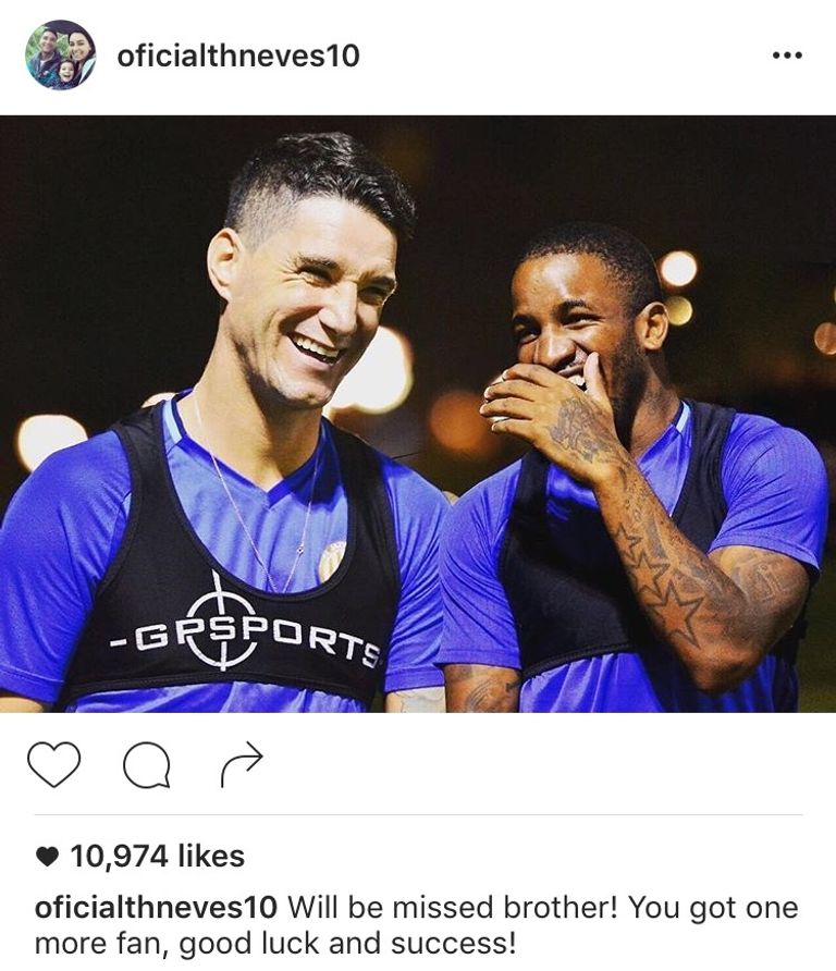 بعث البرازيلي نيفيز لاعب نادي الجزيرة الإماراتي برسالة عبر حسابه الشخصي على موقع "انستقرام"، يودع فيها اللاعب البيروفي فارفان.