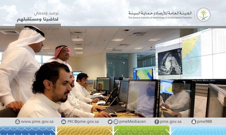 ونشرت الهيئة عبر حسابها في "تويتر" الخميس، صورا لجهود المتابعة والترصد للحالة وتغطية التلفزيون السعودي لغرفة الطوارئ بإدارة التحاليل والتوقعات لمتابعة جهود فريق هيئة الأرصاد وحماية البيئة على مدار الساعة في تطور حالة الإعصار ومساراته.