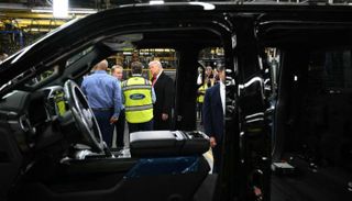 وقام ترامب بجولة في المصنع قبل إلقاء خطاب في نادي ديترويت الاقتصادي. وفي مكان آخر من الجولة، شوهد عمال فورد يهتفون ويلتقطون صورا تذكارية مع الرئيس.