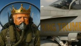 وبحسب مجلة نيوزويك، نشر ترامب مقطعين مصوّرين مولّدين بتقنية الذكاء الاصطناعي، يظهر في أحدهما وهو يضع تاجًا ذهبيًا على رأسه، بينما يُظهره الآخر وهو يقود طائرة كتب عليها "الملك ترامب"، قبل أن يُسقط منها سائلًا بنّي اللون على المتظاهرين، في مشهد رمزي أثار غضب المعارضين الذين وصفوه بأنه استهزاء بالديمقراطية وبحق الشعب في الاحتجاج.