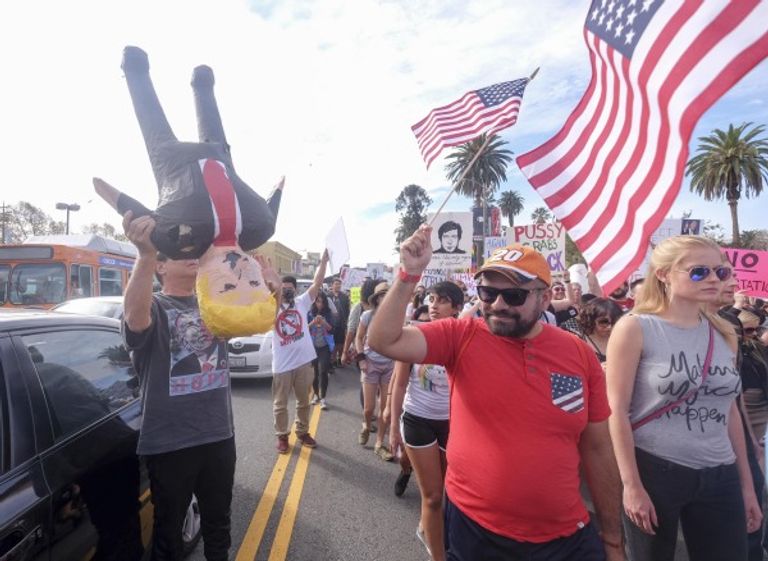 وأعرب المتظاهرون عن قلقهم إزاء وصول شخص إلى البيت الأبيض لم يتردد خلال حملته في التهجم على المكسيكيين والمهاجرين غير الشرعيين وعلى المسلمين، واستخدم تعابير فظة بحق النساء.