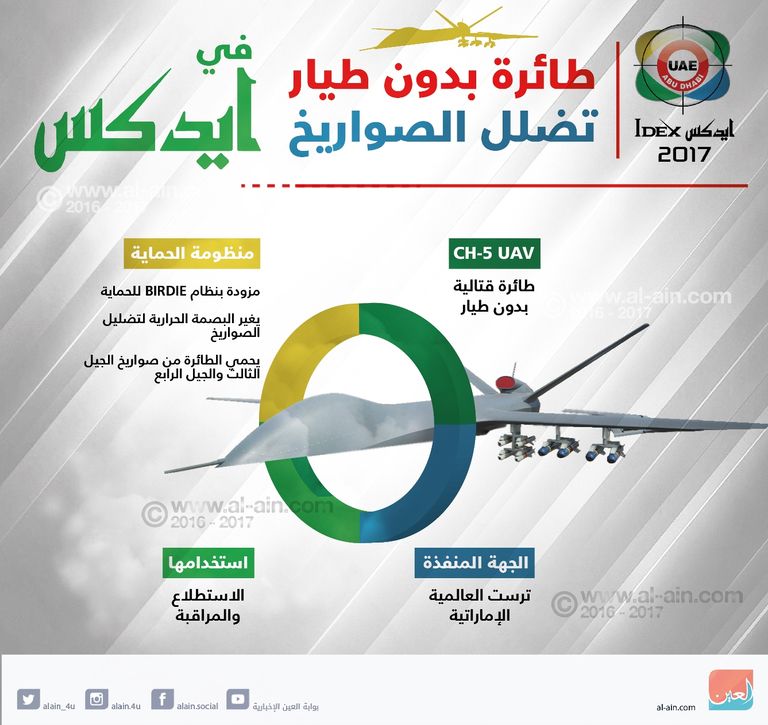 ومن بين ما كشفت عنه الشركة، طائرة بدون طيار، لديها قدرة طيران متواصلة تمكنها من أداء مهامها بكل دقة.. المزيد من التفاصيل في الإنفوجراف التالي: