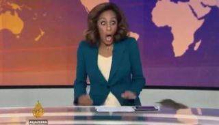 وكان الفيديو المتداول قد أظهر مذيعة الجزيرة الإنجليزية وهي تقدم نشرة الأخبار قبل أن تلاحظ حركة مفاجئة أمامها، لتبدو عليها علامات الذعر وتترك مقعدها، ثم تحاول استكمال البث بابتسامة في محاولة للحفاظ على تماسكها أمام الكاميرا.