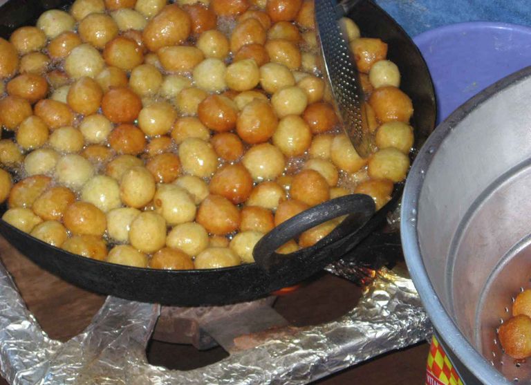وأشارت إلى الأكلات المعروفة أيام العيد والتي يحرص الأهالي في كل منزل على أعدادها أشهرها الخبيص واللقيمات والخنفروش والهريس (كان قديما يتم تحضيره مع البيض وأحيانا مع الدجاج نظرا لعدم توفر اللحم آنذاك)، ومن أشهر حلويات العيد الحلوى والزلابيا والبشمك الذي يصنع من الطحين والسكر وحل الحلو.