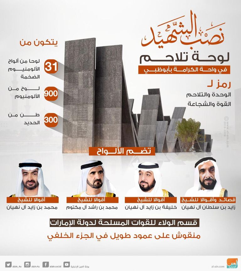 إنفوجراف: "نصب الشهيد".. رمز الوحدة والتكاتف في واحة الكرامة بأبوظبي