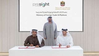 وبحضور محمد القرقاوي، وزير شؤون مجلس الوزراء، وقّعت وزارة التجارة الخارجية اتفاقية مع شركة "بريسايت" المتخصصة في حلول الذكاء الاصطناعي والتابعة لمجموعة G42 الإماراتية، لبناء هذه المنصة التي تعتمد أدوات الذكاء الاصطناعي بالكامل، لتسهيل إجراءات التجارة الخارجية لتكون أسرع وأكثر ذكاءً ومرونة، وللمساهمة في ترسيخ مكانة دولة الإمارات مركزاً عالمياً للتجارة الدولية.