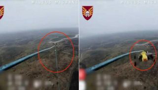 ويُظهر التسجيل، المأخوذ من كاميرا الرؤية الأمامية لطائرة مسيّرة أوكرانية، جهازًا جديدًا عبارة عن "عامود حديدي بارز" من هيكل الطائرة، يتدلى منه خيط رفيع مشدود بثقل صغير.