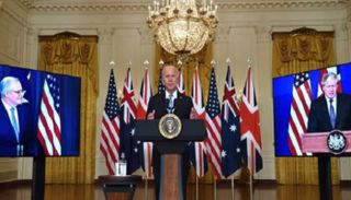 تم الكشف عن الاتفاق في سبتمبر/أيلول 2021 من قبل ثلاثة زعماء سابقين هم الرئيس الأمريكي جو بايدن ورئيس الوزراء الأسترالي سكوت موريسون، ورئيس الوزراء البريطاني بوريس جونسون.