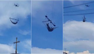 وعلقت "الديلي ميل" على المقطع المصور، مشيرة للقدرة الفائقة للطائرة الصغيرة التي حملت وزن الرجل بدون طيار.