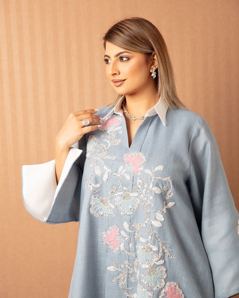 كما تتضمن بعض القطع تطريزات راقية وتفاصيل دقيقة، تعكس عناية وعد بأدق عناصر التصميم.