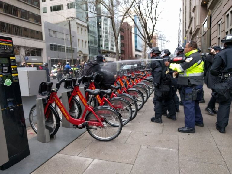 وقد قام المتظاهرون بتكسير واجهات عدد من المحلات وسيارات الشرطة بينما تحاول قوات الشرطة والحرس الوطني الأمريكي تفريق المتظاهرين وإبعادهم عن موقع حفل التنصيب، وتتنامى دعاوى التظاهر بسبب رفض العديد من الأمريكيين لفكرة أن ترامب هو رئيس الولايات المتحدة، حيث ستقوم العديد من المجموعات بالاستمرار بالتظاهر، وبالأخص مظاهرة ضخمة تشهدها واشنطن غد السبت من قبل النساء، اعتراضاً على ما أسموه "دخول متحرش إلى البيت الأبيض".