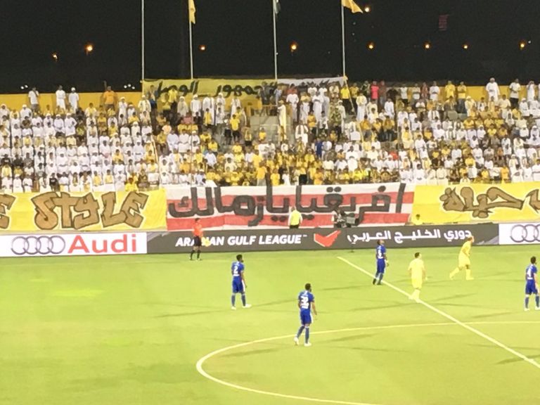 ورفع مشجعو الوصل لافتة تحمل عبارة "افريقيا يا زمالك" في مواجهة النصر بالجولة الثالثة من دوري الخليج العربي (الجمعة)، لتظهر جماهير الإمبراطور الدعم والمساندة للأبيض الشقيق في مواجهته القارية.