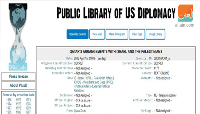 وجاء ذلك في وقت أشارت فيه البرقية إلى أن "قطر حافظت على اتصالات سرية وعلنية مع إسرائيل" في إشارة إلى زيارة وزيرة الخارجية السابقة تسيبي ليفني إلى قطر في 13 و14 من الشهر نفسه.