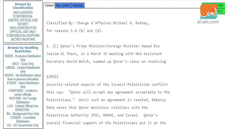 استنادا إلى الوثائق التي كتبها دبلوماسيون أمريكيون، واطلعت عليها بوابة "العين" الإخبارية