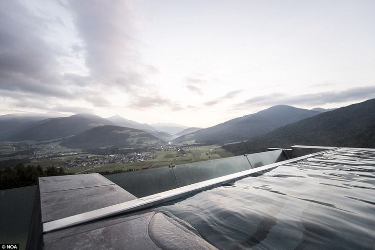 كما أشارت الصحيفة إلى أن حمام السباحة هذا جزء من توسيع جديد في فندق هوبرتوس، جنوب تيرول، في إيطاليا.