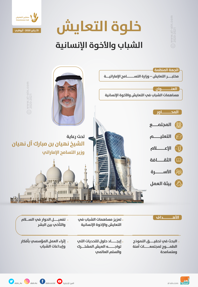 الفعالية تهدف إلى تعزيز مساهمات الشباب في التعايش والأخوة الإنسانية، وإيجاد حلول للتحديات التي تواجه العيش المشترك والسلم العالمي