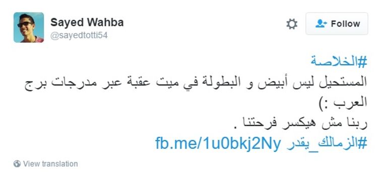 واعتبرت جماهير الزمالك في تغريدات عبر موقع التواصل الاجتماعي "تويتر" أن فريقها قادر على التتويج باللقب الغائب عن القلعة البيضاء منذ 14 عاما.