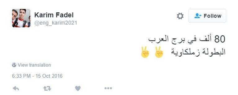 وكانت "برج العرب" الأكثر تداولا في مصر على موقع التواصل الاجتماعي "تويتر" عقب مباراة الذهاب، حيث قامت الجماهير بالتعبير عن رفضها الاستسلام لفكرة وداع البطولة.
