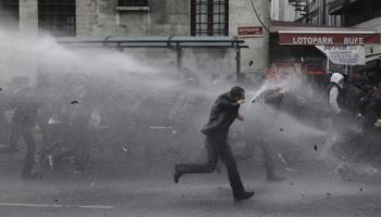 قوات الأمن التركي بإسطنبول خراطيم المياه والغاز المسيل للدموع ضد حشود المتظاهرين في المدينة.
