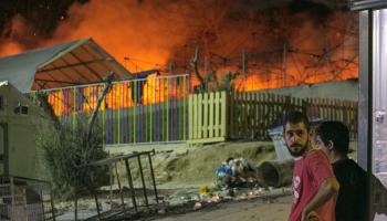حريق ضخم شبّ في مخيم موريا للاجئين في جزيرة ليسبوس اليونانية الاثنين الماضي أتى على معظمه.. تعرف على التفاصيل