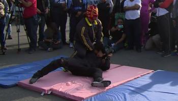 الشرطة المكسيكية تلجأ لخدمات أبطال في المصارعة الحرة لتدريب عناصرها على مهارات تفيدهم في الإمساك بالمطلوبين دون استخدام السلاح.