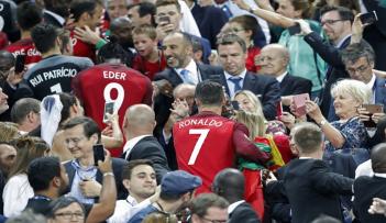 البرتغالي كريستيانو رونالدو يتقمص دور فيرناندو سانتوس المدير الفني لمنتخب بلاده في اللحظات الأخيرة لبطولة يورو 2016.