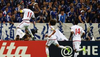 أحمد خليل يعدل النتيجة لمنتخب الإمارات في مواجهة نظيره الياباني بمباراة الجولة الأولى من تصفيات كاس العالم 2018