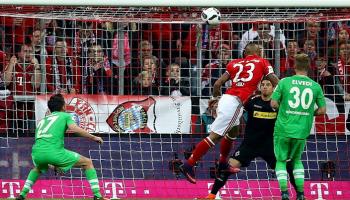 التشيلي أرتورو فيدال يسجل أول أهداف بايرن ميونخ في شباك بروسيا مونشنجلادباخ.