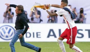 المدرب صاحب الـ 57 عاما حاول الجري من لاعبيه فرارا من حمام الجعة لكنه لم يبتعد كثيرا قبل أن يصاب بشد في الخلفية