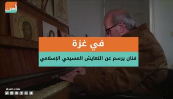 فنان في غزة يرسم على لوحاته الخشبية عن التعايش بين المسلمين والمسيحيين.. شاهد الفيديو.